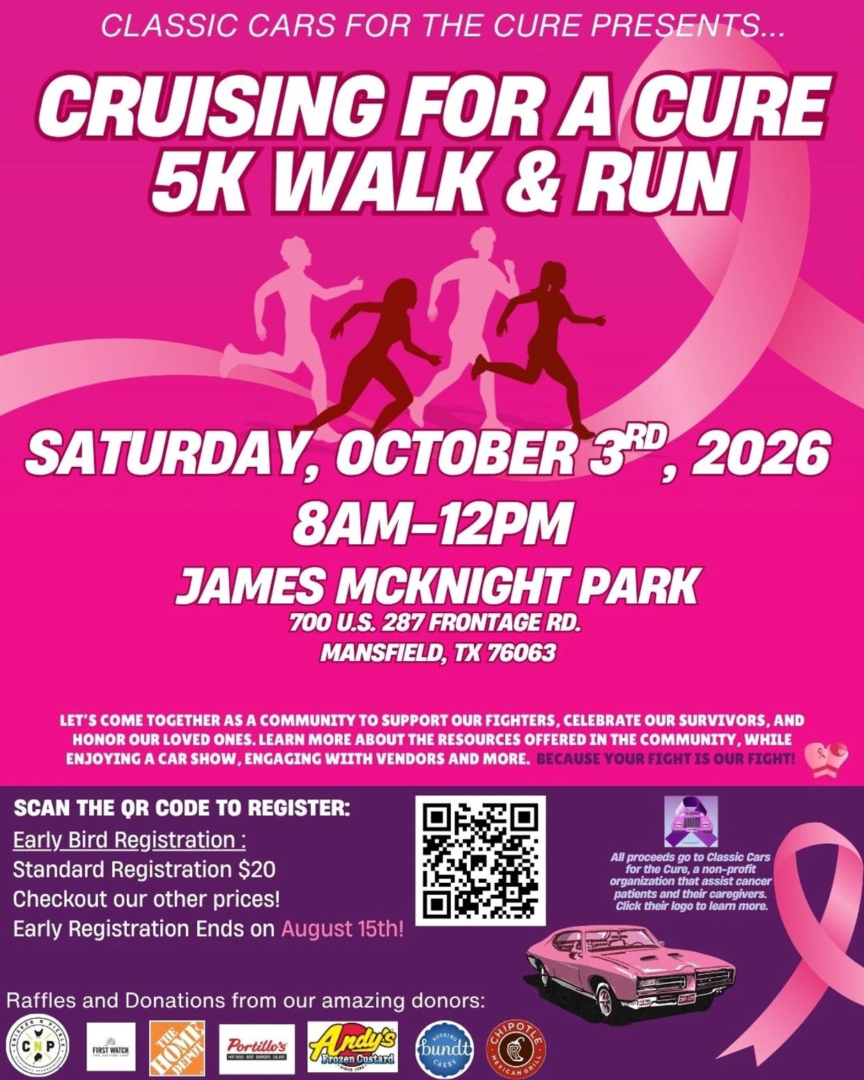 If you or your car club would like to showcase your ride at our Breast Cancer Walk, we’d love to have you join us! Sign up using the button below and come be part of a meaningful day. Enjoy live music, receive a free T-shirt, and take part in the walk as we come together to support an important cause.